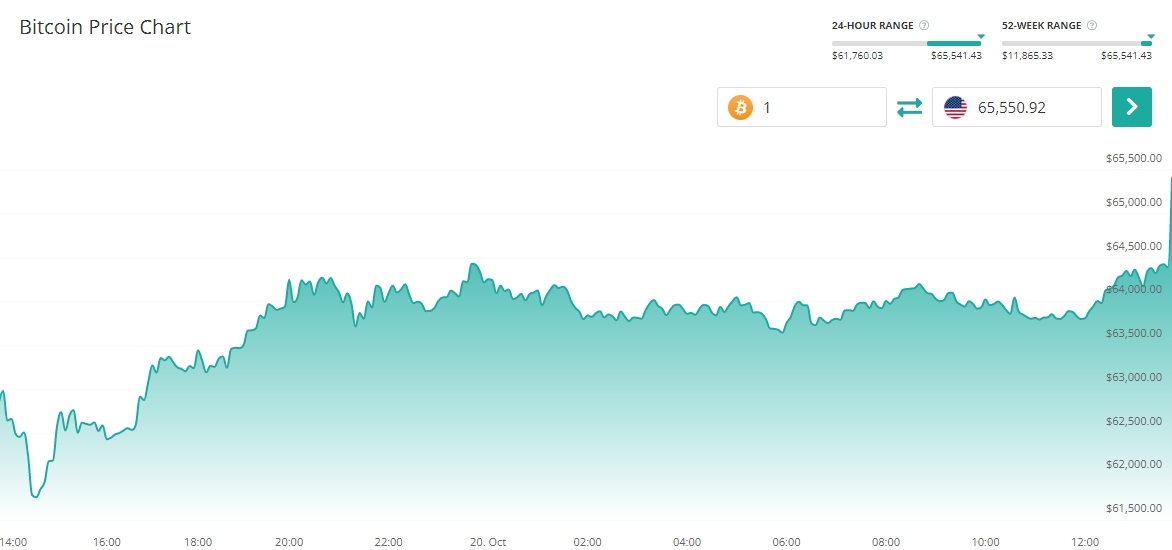 After a little over six months, Bitcoin has reached a new peak. The world’s largest cryptocurrency has managed to break the previous ATH set on April 14, and climbed above the $65K mark for the first time in its history.